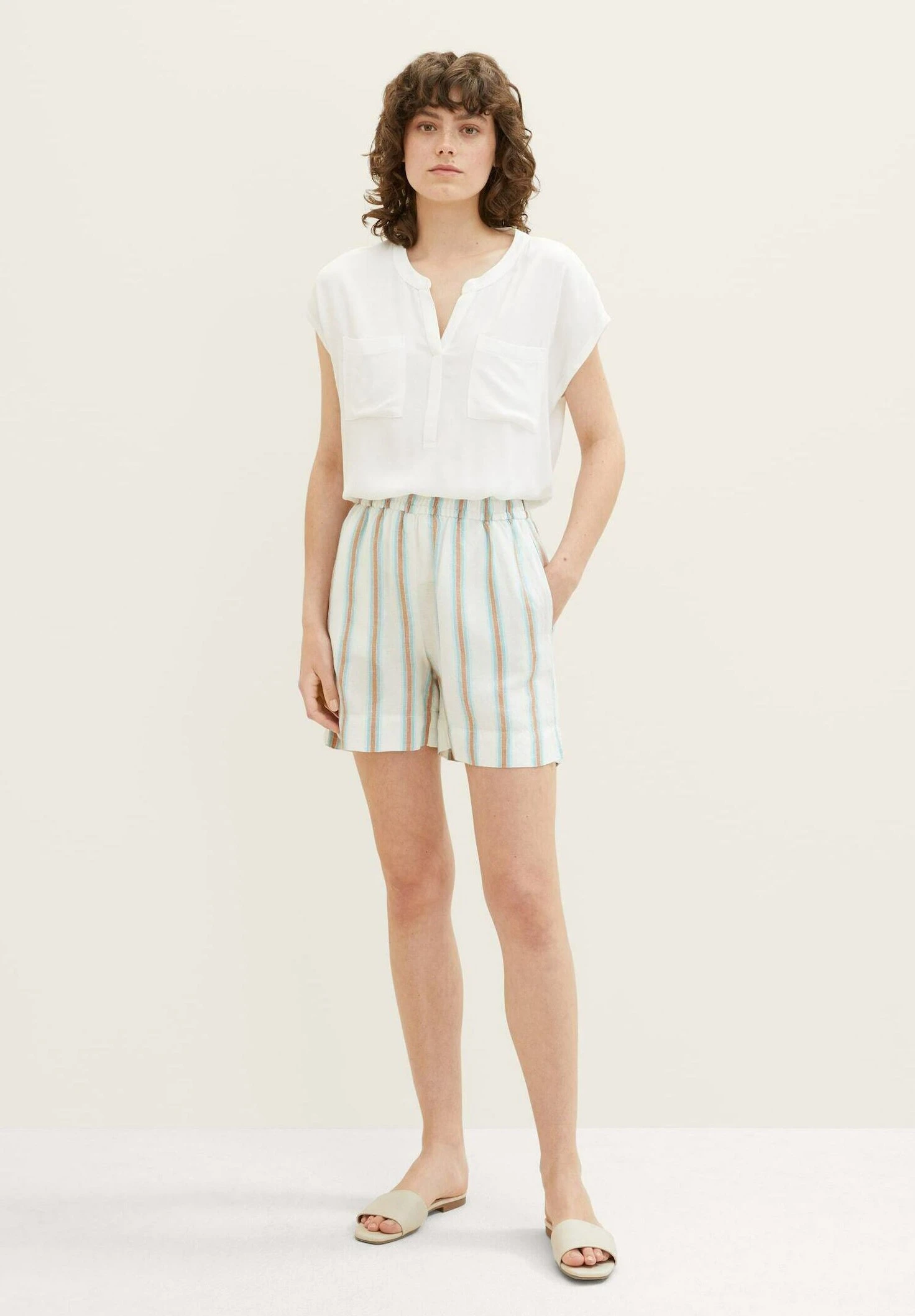 Tom Tailor Bermuda Mit – Shorts – Offwhite/Brown Vertical Stripe