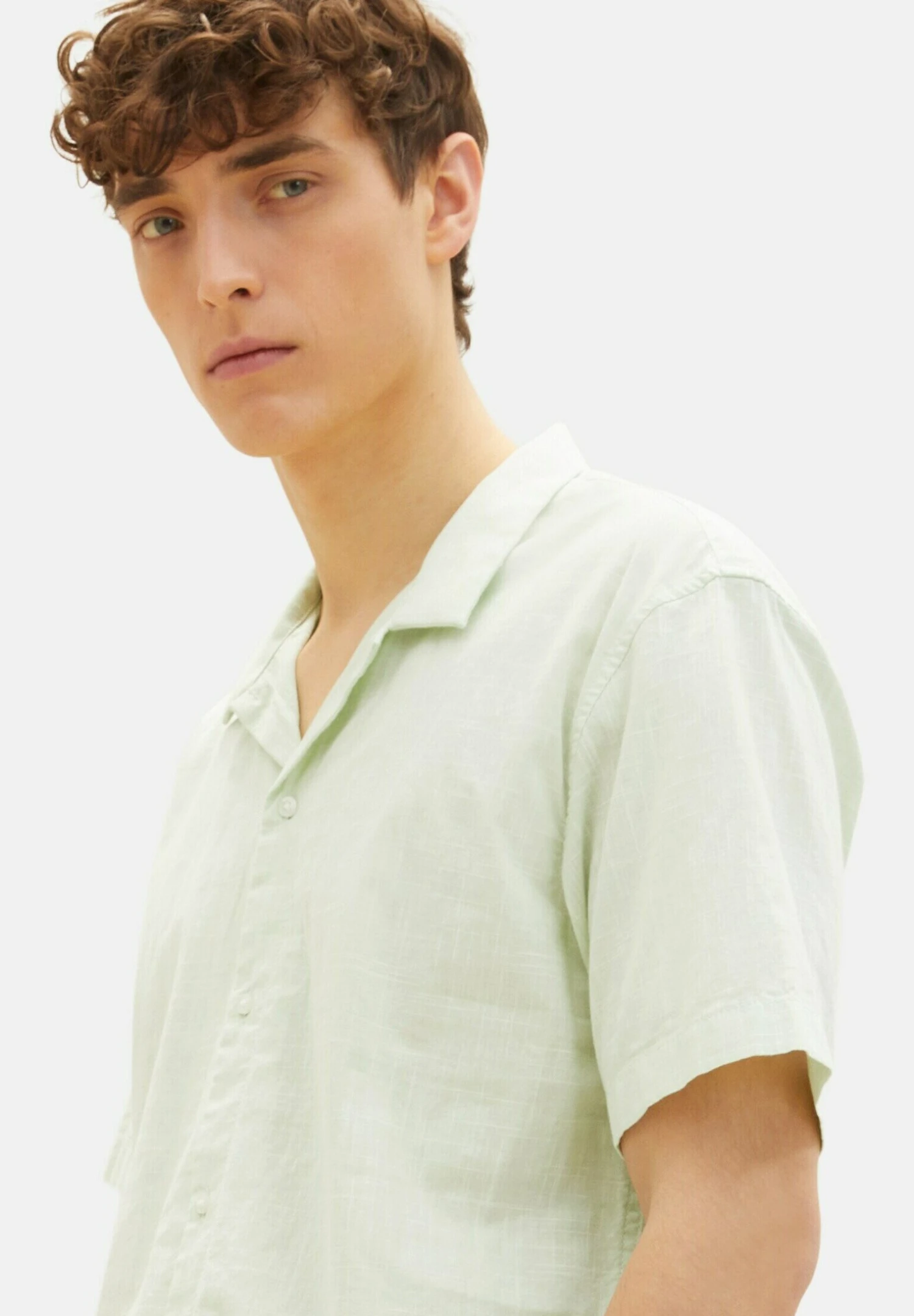 TOM TAILOR Denim Kurzarm – Overhemd – Green Woolwhite Slub Structure