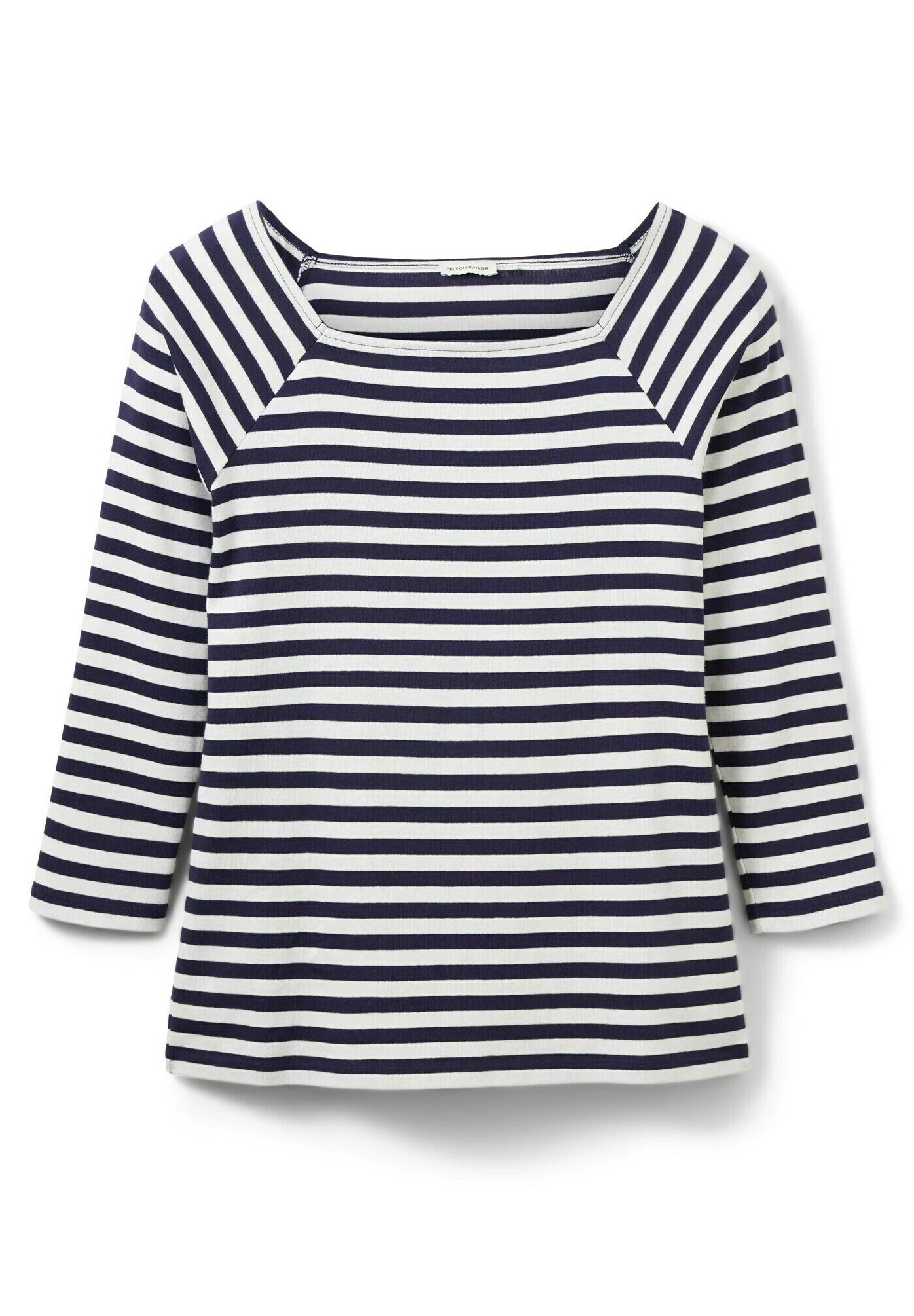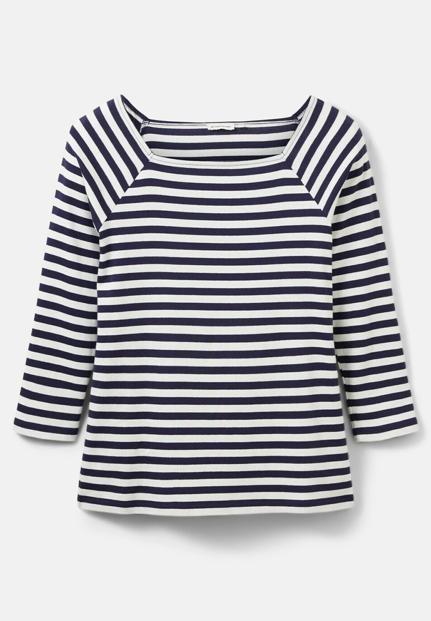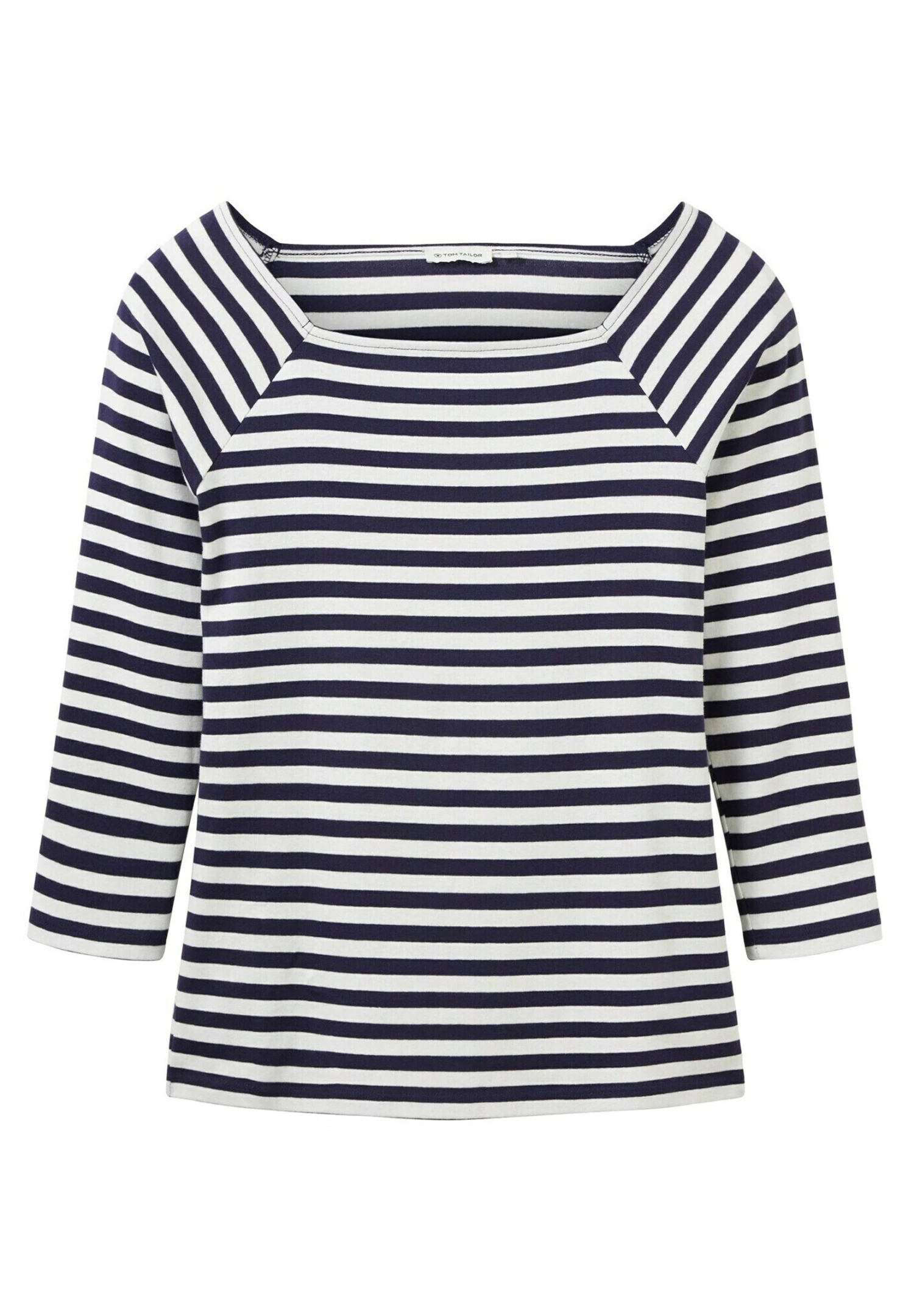 Tom Tailor Gestreiftes Mit Karree Ausschnitt – Longsleeve – Navy Offwhite Stripe
