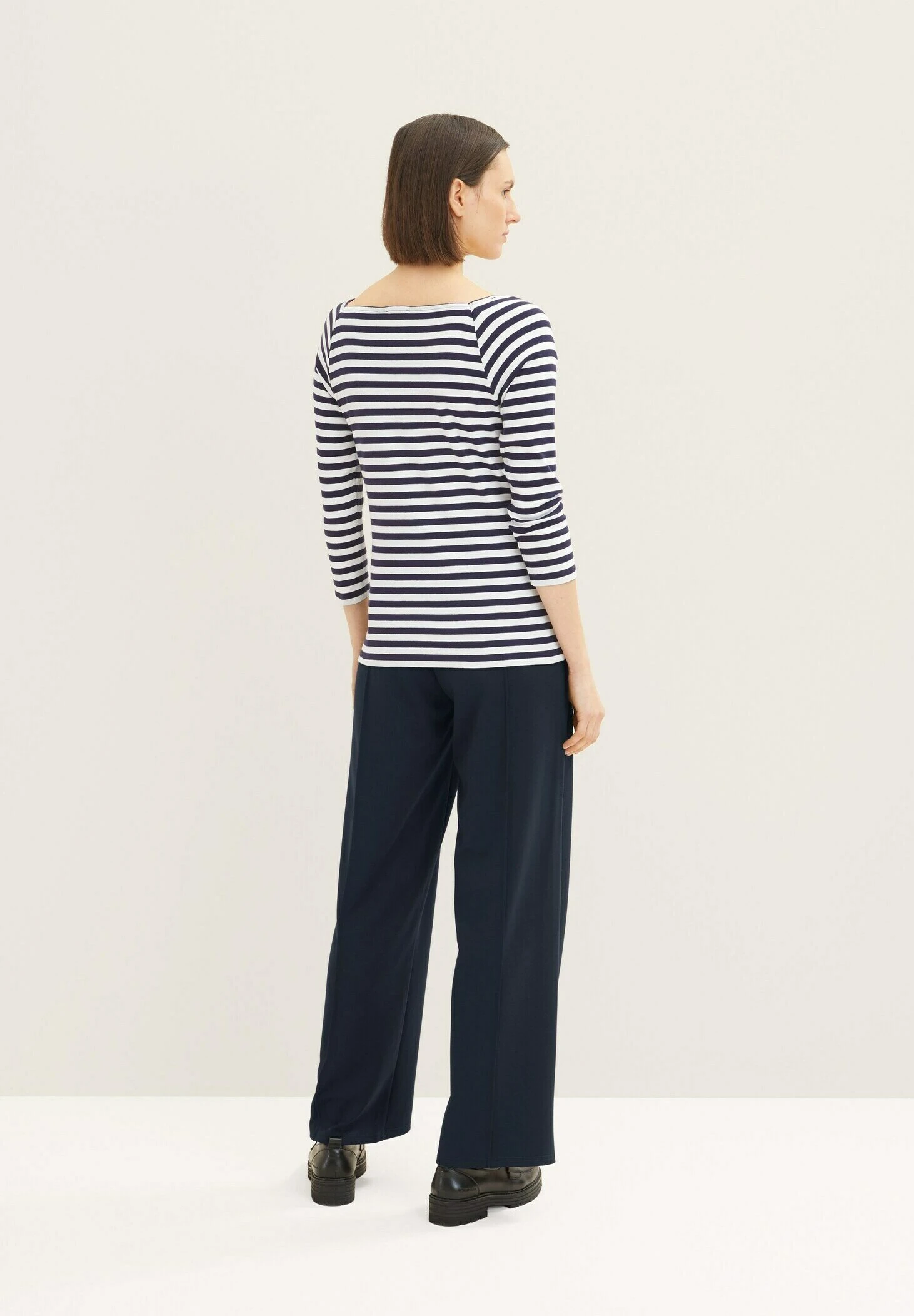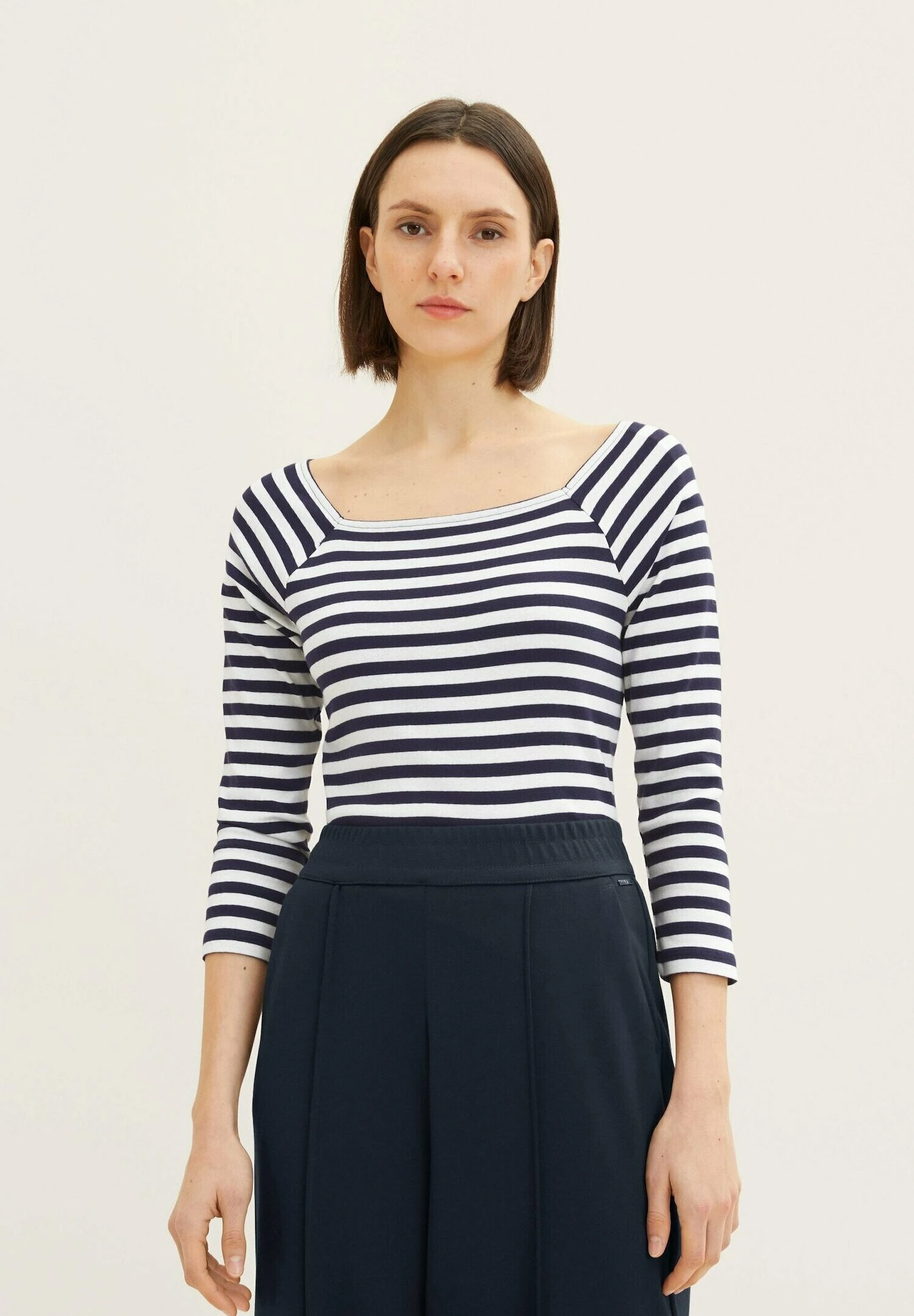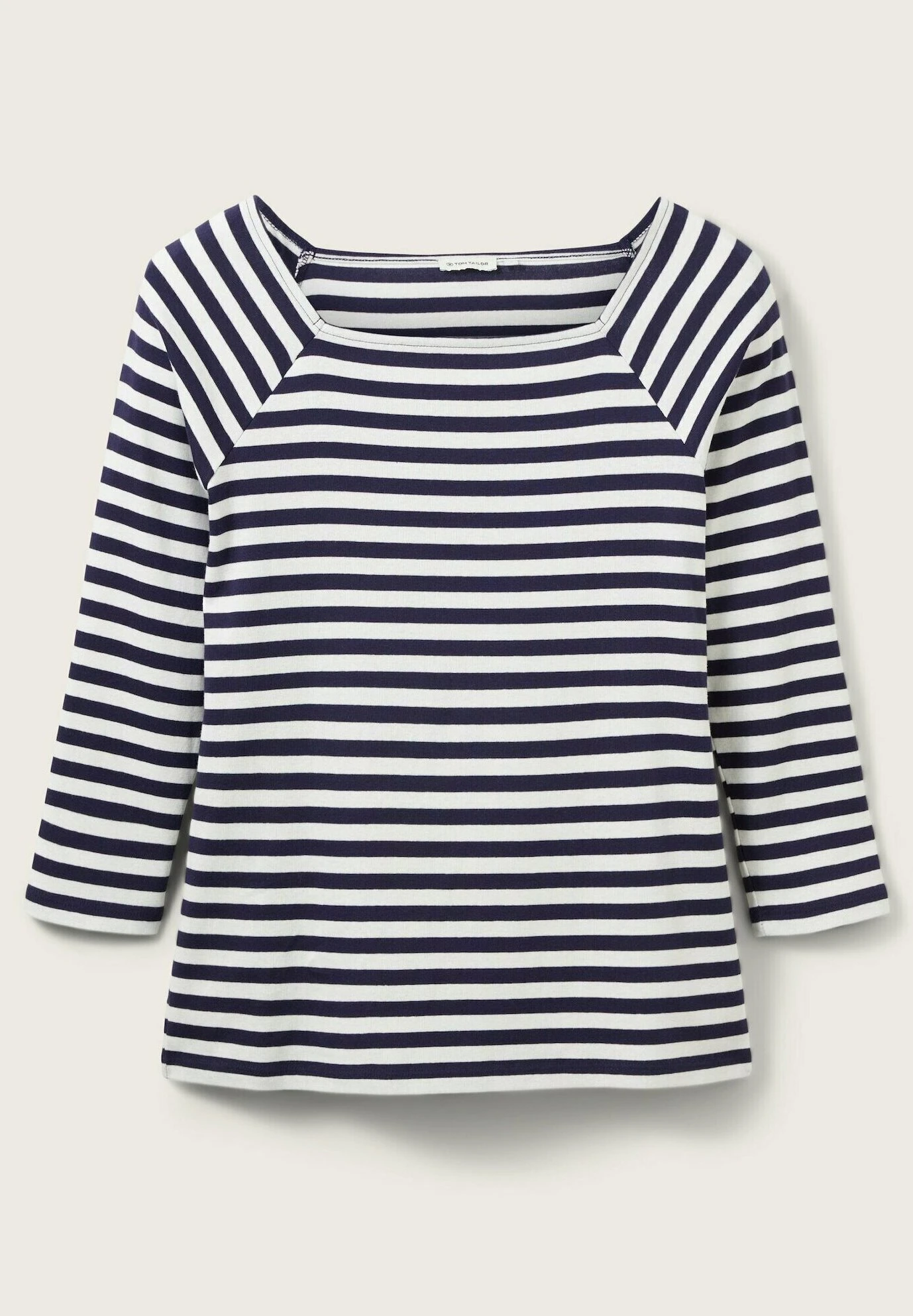 Tom Tailor Gestreiftes Mit Karree Ausschnitt – Longsleeve – Navy Offwhite Stripe