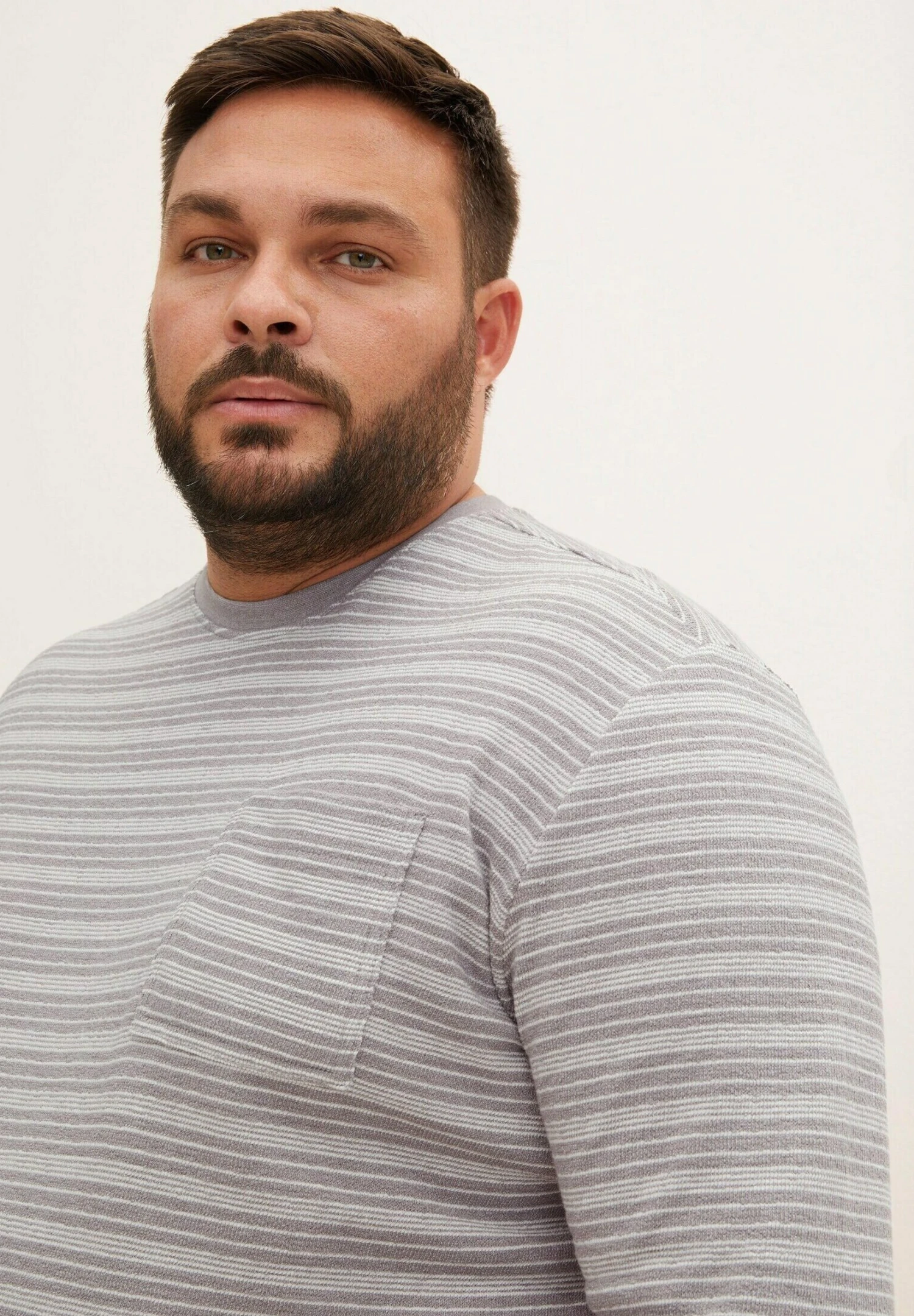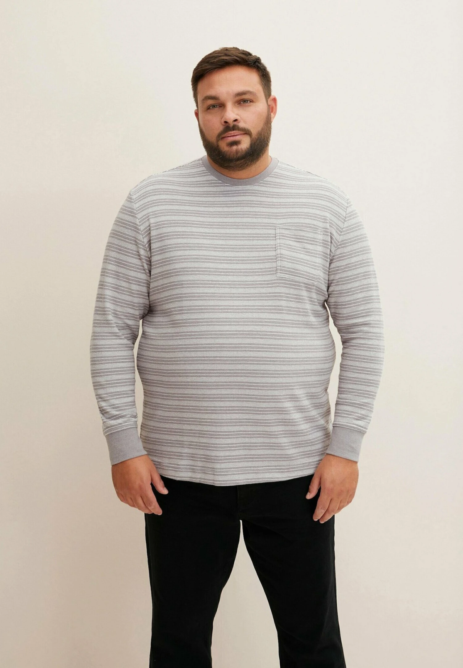 Tom Tailor Langarm – Trui – Grey Twotone White Stripe