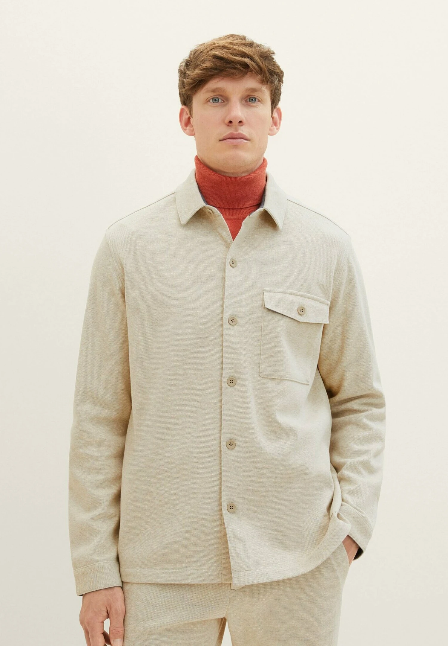 Tom Tailor Mit Aufgesetzter Brusttasch – Lichte Jas – Beige Pique Melange