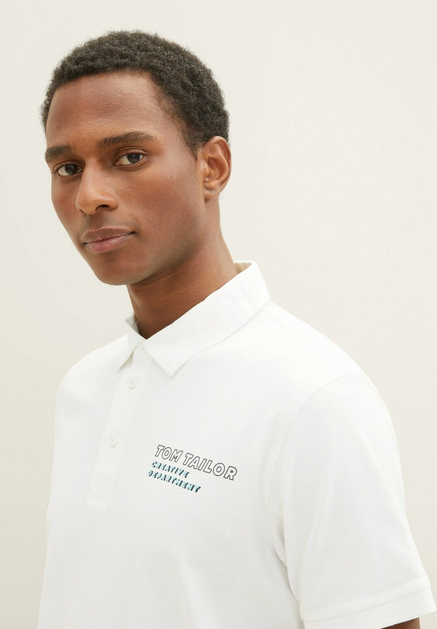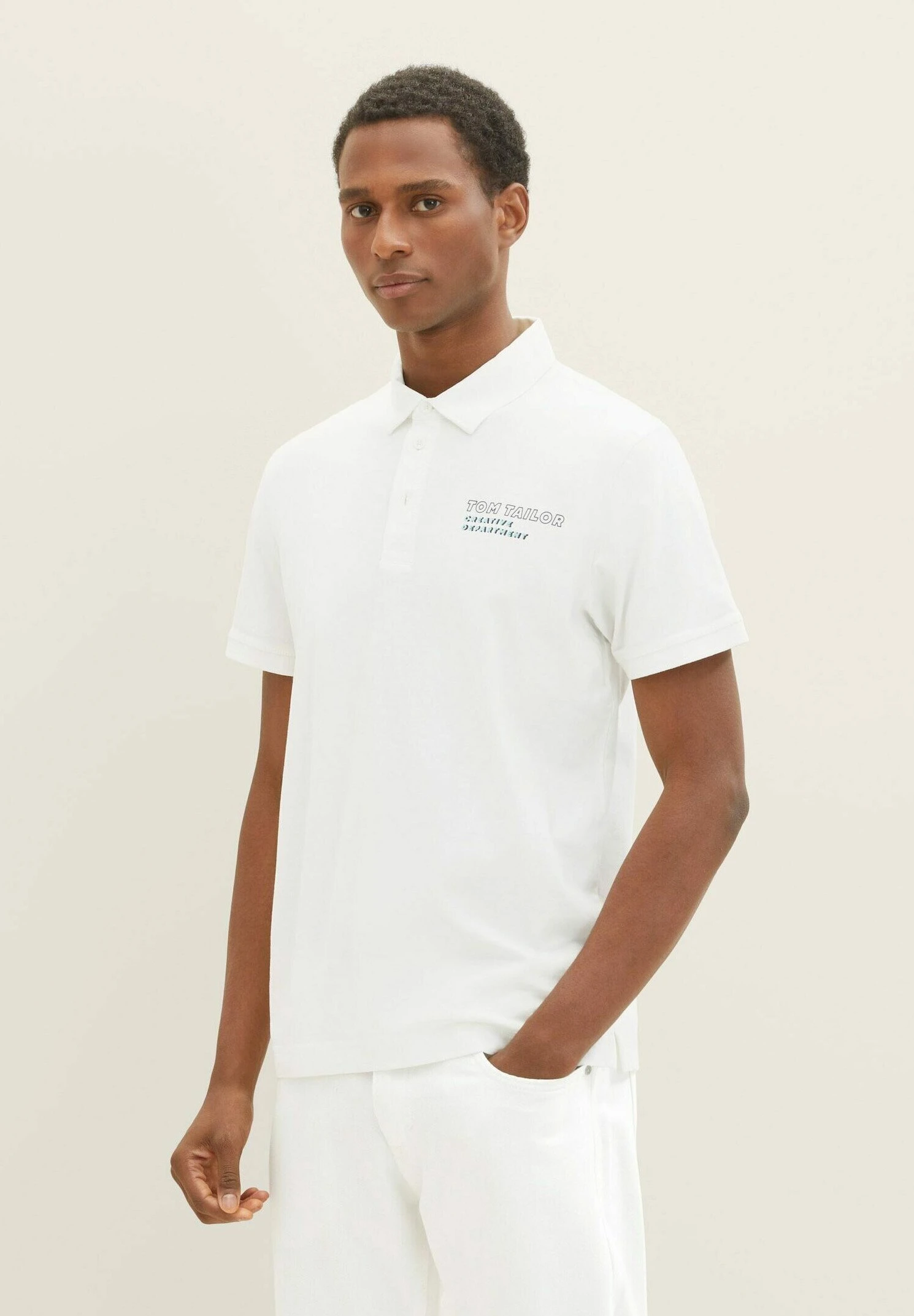 Tom Tailor Mit Logo Print – Poloshirt – Off White