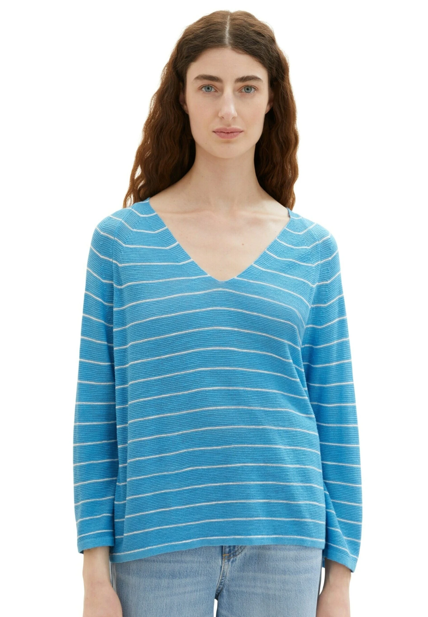 Tom Tailor Mit V Ausschnitt – Trui – Blue Offwhite Stripe